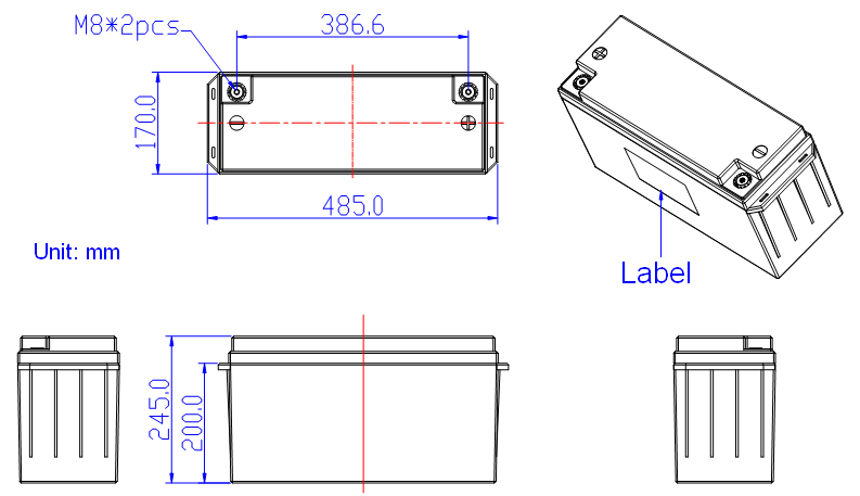 2. Smart Lithium battery 12V 150Ah dimension